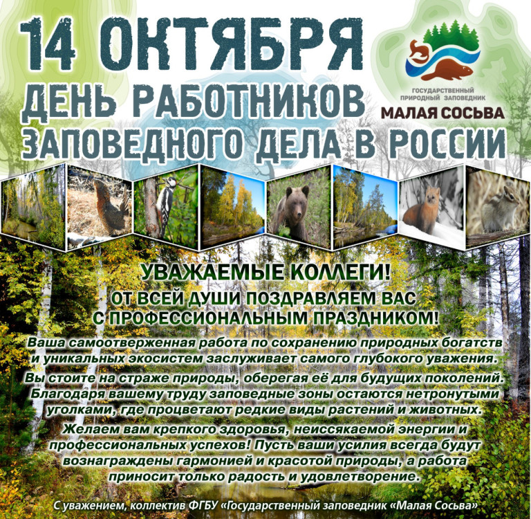 В октябре 1999 года в России появился новый профессиональный праздник – День работников заповедного дела. К сожалению, он не имеет статус официального праздника. Тем не менее, хорошая традиция поздравлять в этот день всех, чья деятельность связана с заповедным делом, прижилась. Работники заповедников – настоящие энтузиасты и неравнодушные люди. Благодаря их усилиям удается сохранить в первозданном виде уникальные ландшафты и многообразие животного и растительного мира на территории Российской Федерации. Именно они помогли спасти от истребления соболя, европейского бобра, амурского тигра, зубра, дикого пятнистого оленя и множество других редких видов животных, часть из которых существует сегодня только в заповедниках. Впрочем, основная цель Дня работников заповедного дела – не только чествование тех, кто связал свою жизнь с этой профессией, но и привлечение внимания всех россиян к заповедному делу. Ведь заповедная система России – это настоящее национальное достояние, которой можно только гордиться! #ЗаповедникМалаяСосьва